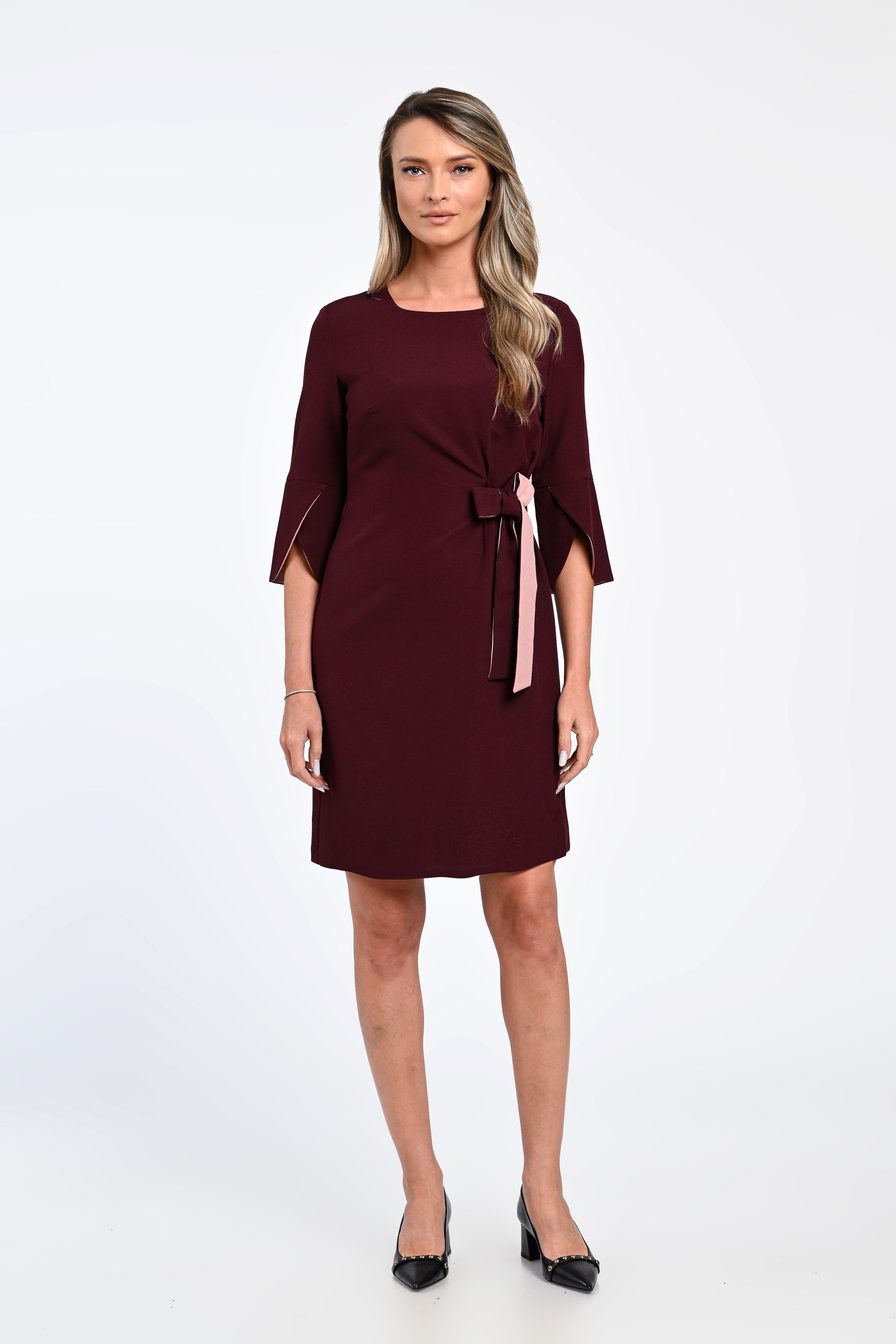 Rochia Mara în nuanța visinie este o alegere elegantă și rafinată pentru femeia modernă. Croiala lejeră avantajează silueta, iar funda laterală adaugă un accent delicat, ce evidențiază talia într-un mod subtil și feminin. Mânecile trei sferturi, cu deschizătură elegantă, oferă un aer sofisticat și o notă de originalitate. Confecționată dintr-un material plăcut la atingere, rochia Mara este perfectă pentru birou, evenimente de zi sau întâlniri speciale.