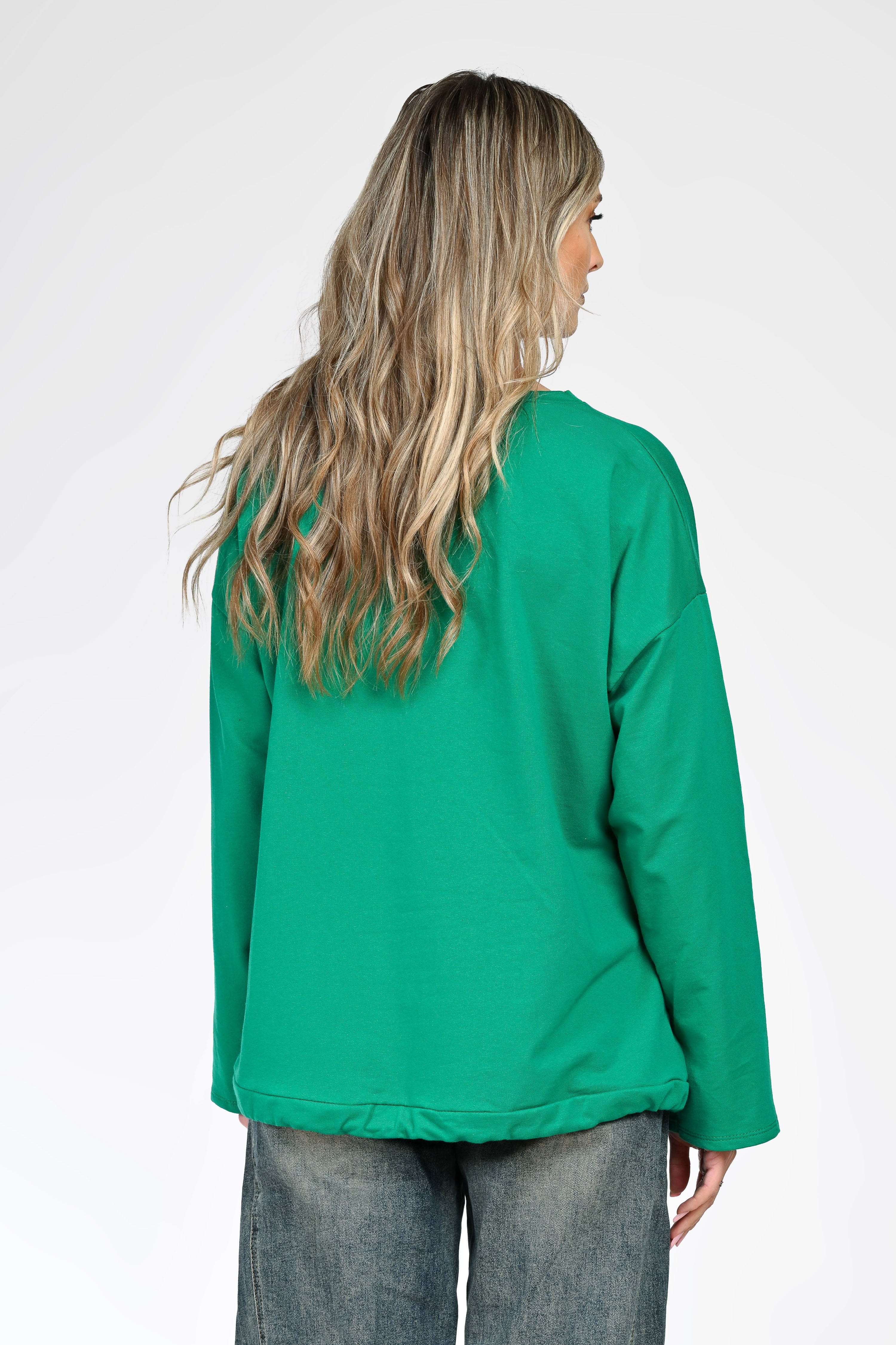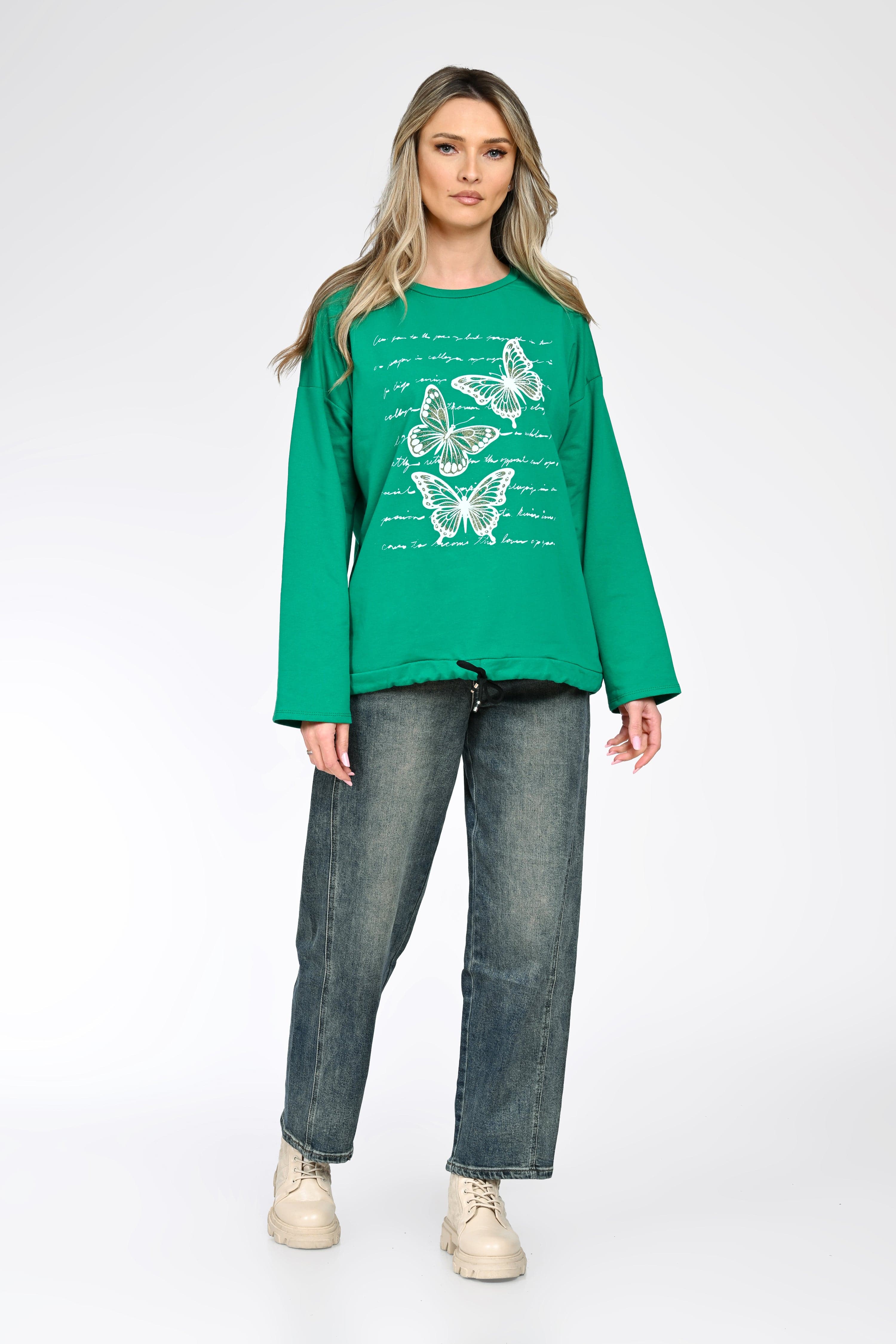 Bluza Livia cucerește prin nuanța vibrantă de verde și printul delicat cu fluturi, completat de detalii grafice tip text, pentru un look modern și expresiv. Croiul lejer și mânecile lungi oferă confort și libertate de mișcare, fiind ideală pentru purtare zilnică.