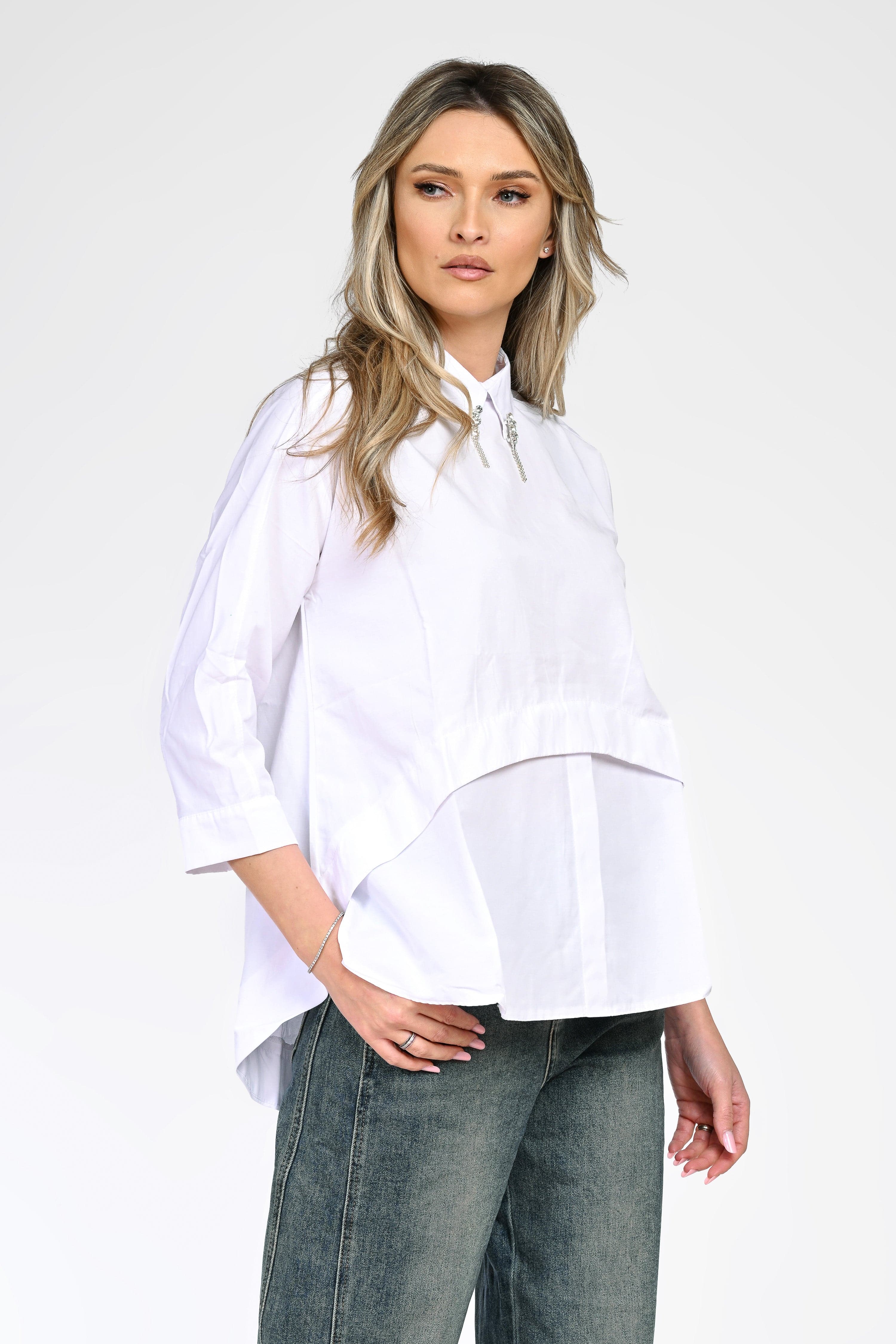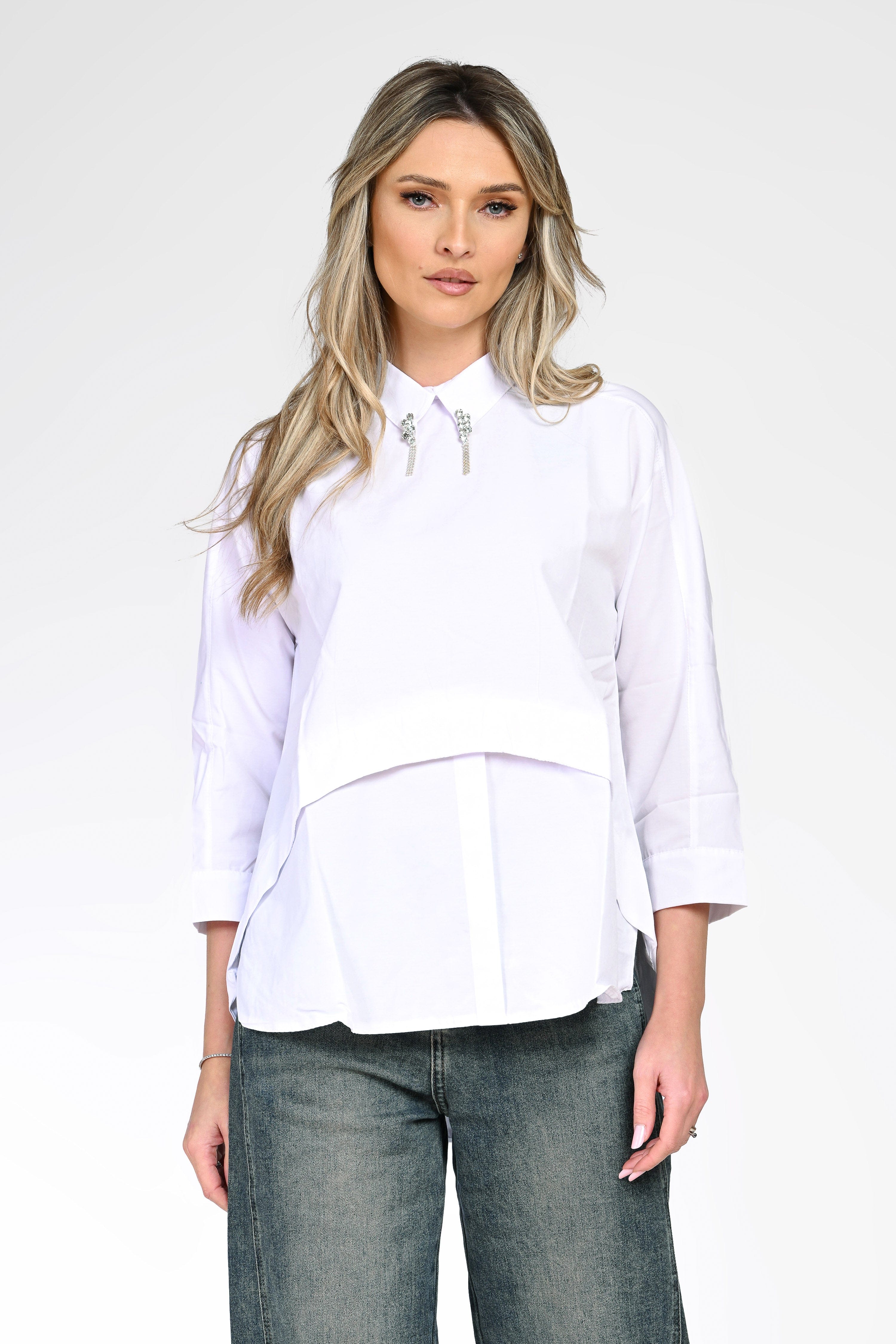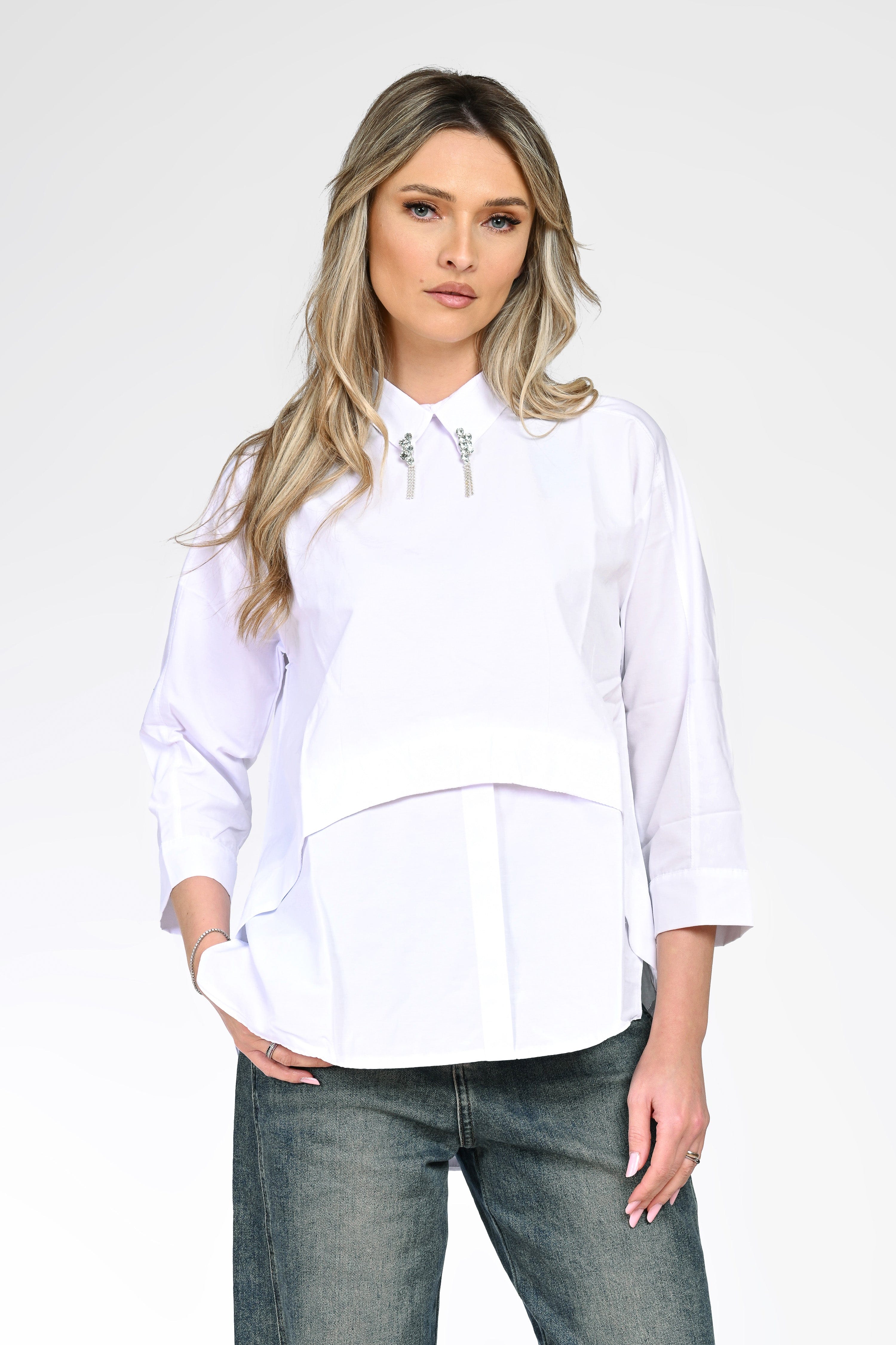 Cămașă damă albă cu design stratificat și detalii bijuterie Elise