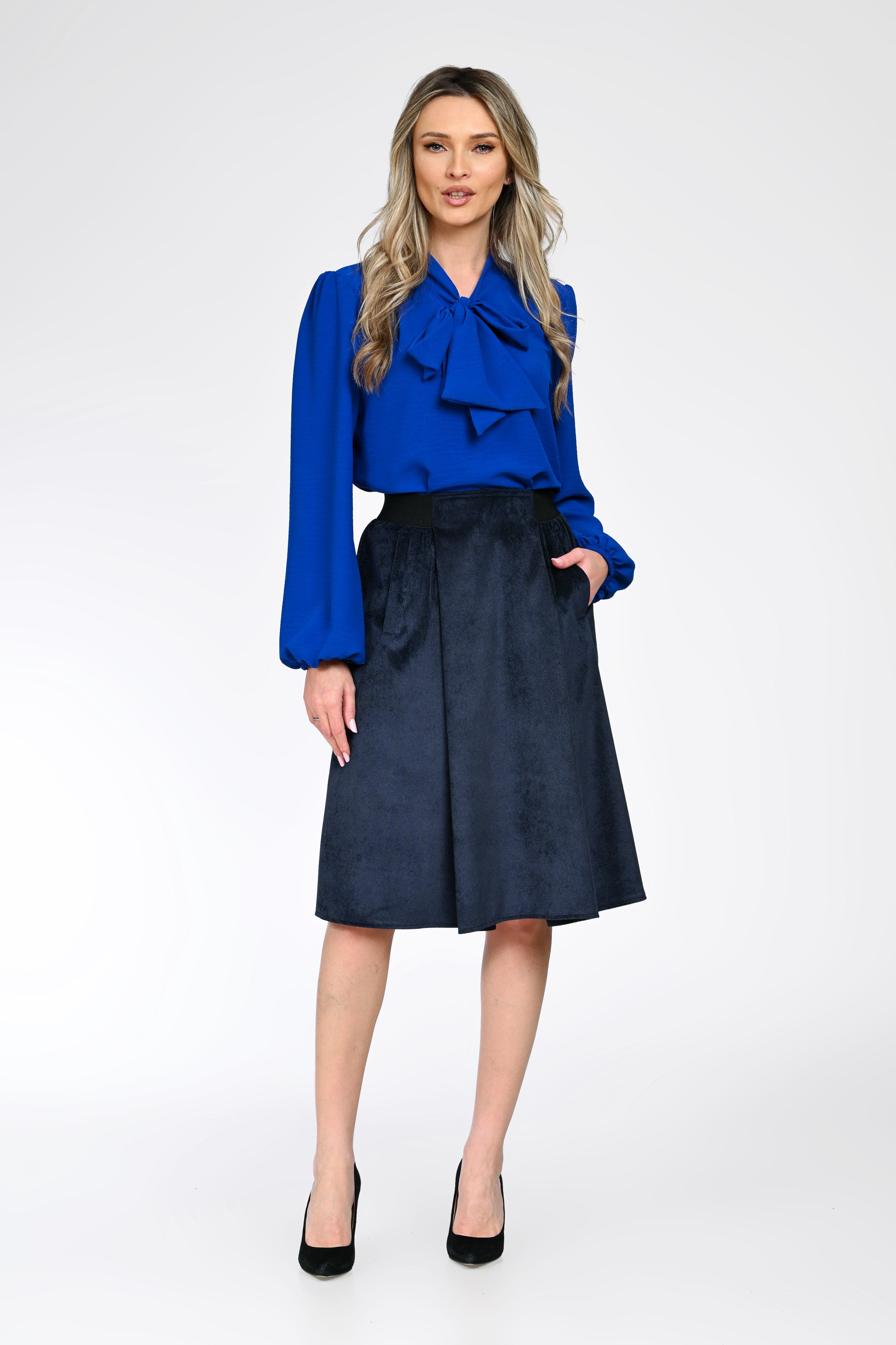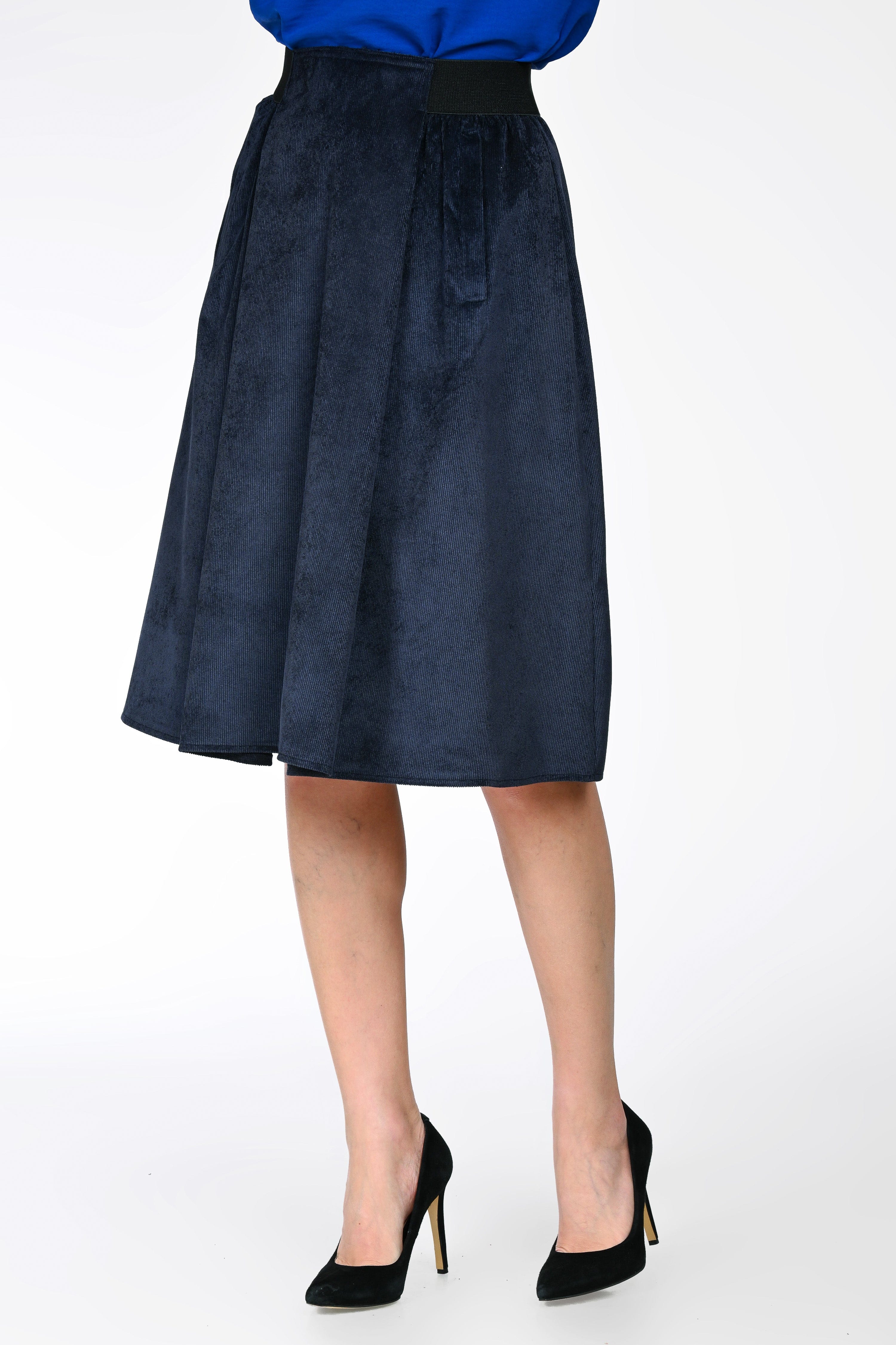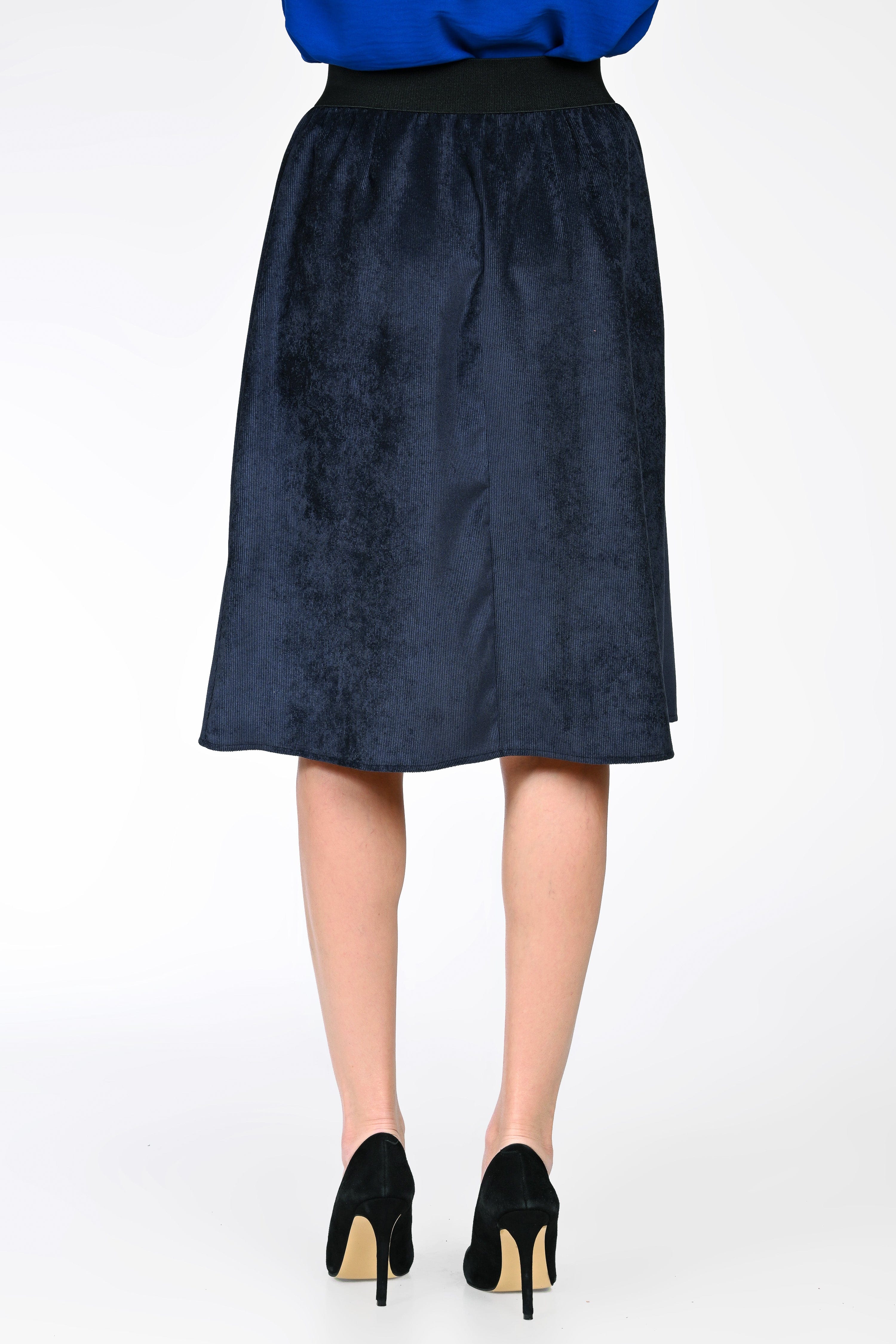 Fusta Natalia este o piesă elegantă și versatilă, ideală pentru ținute office sau casual-elegante. Nuanța bleumarin profundă și textura fină a materialului oferă un aspect rafinat, ușor de integrat în garderoba de sezon. Croiul evazat și lungimea midi avantajează silueta, iar talia elastică asigură confort și o potrivire plăcută pe corp.