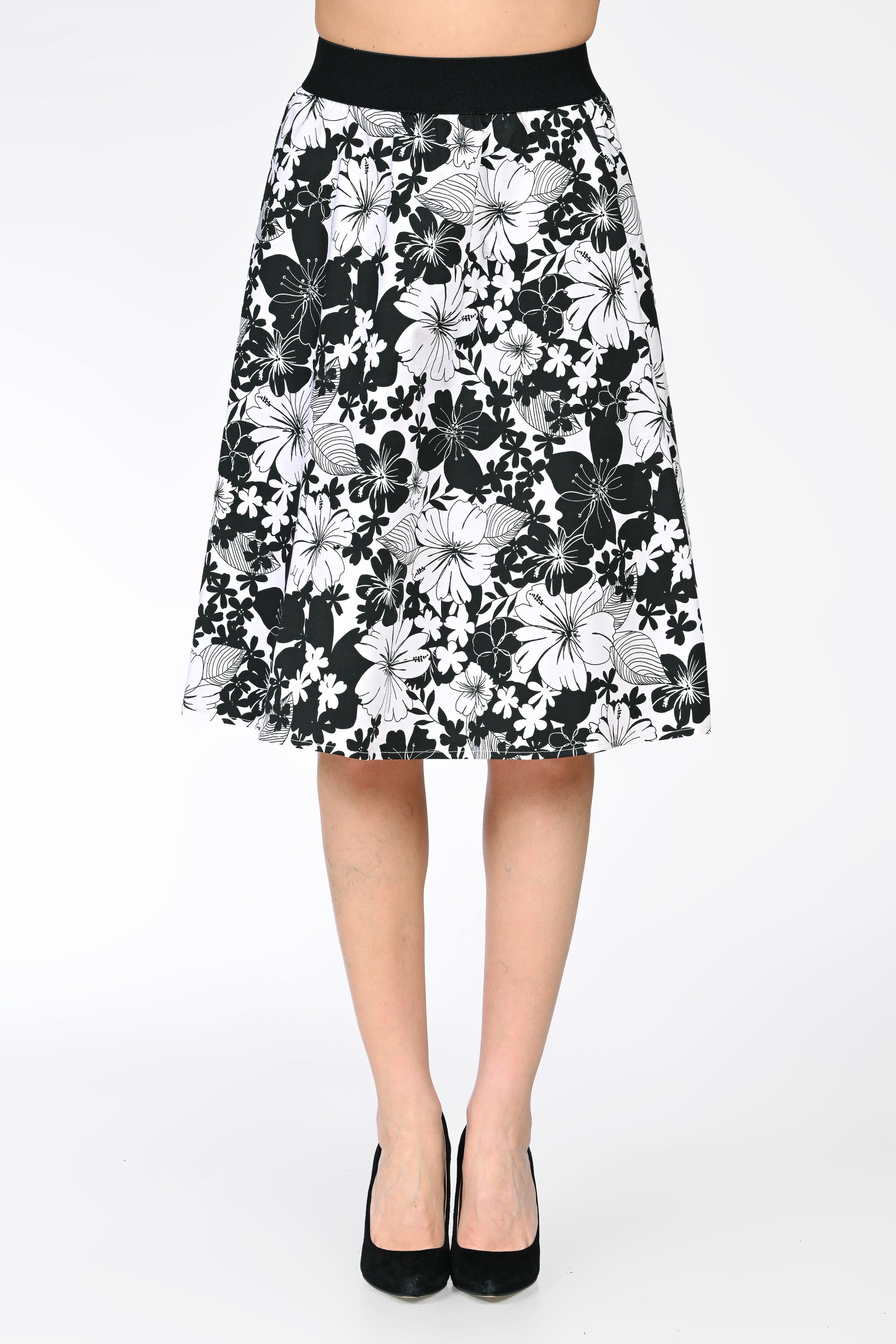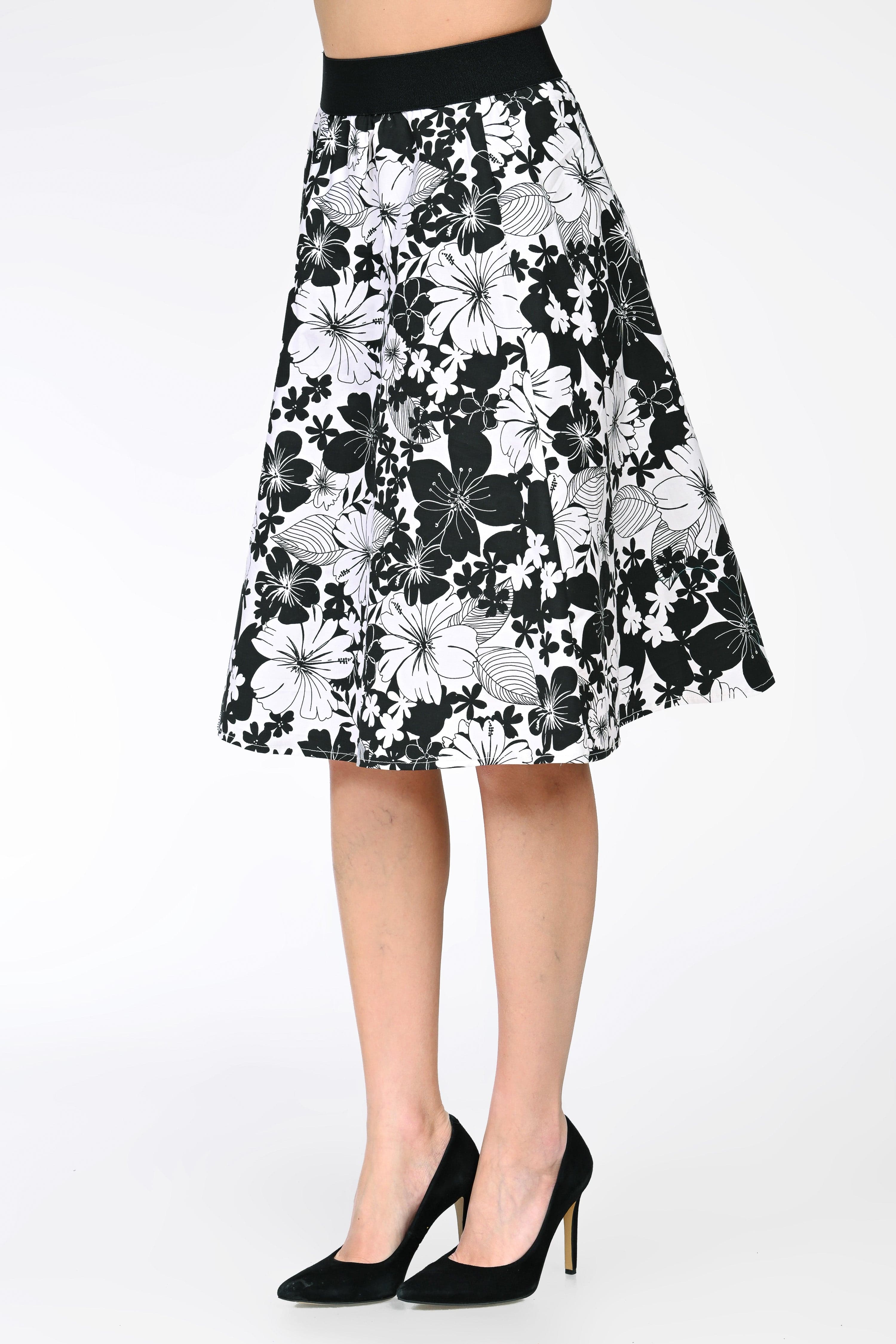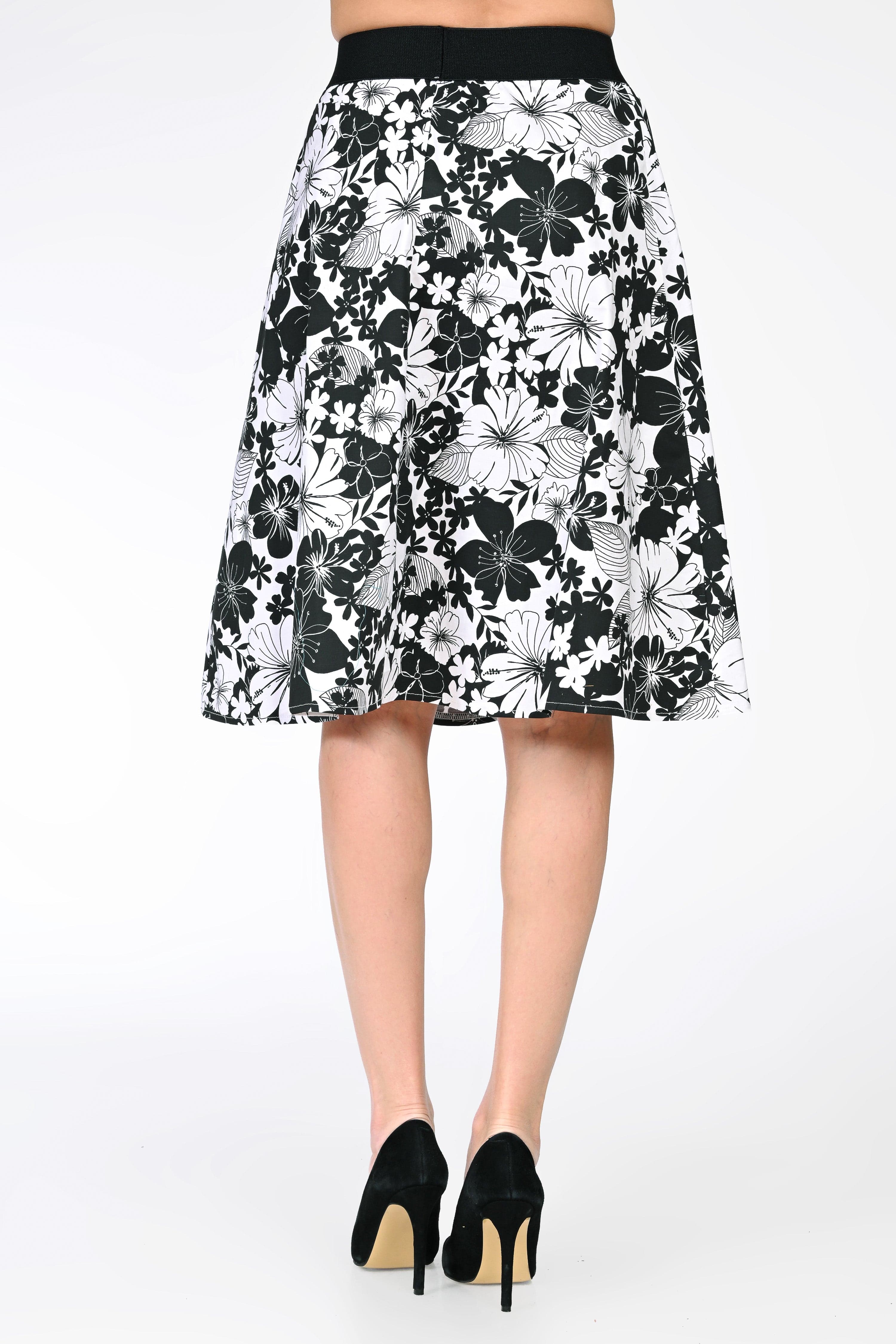 Ana este o fustă midi feminină, realizată din bumbac, ideală pentru purtarea zilnică datorită confortului și respirabilității materialului. Imprimeul floral alb-negru oferă un aspect clasic și elegant, ușor de integrat în ținute casual sau office.