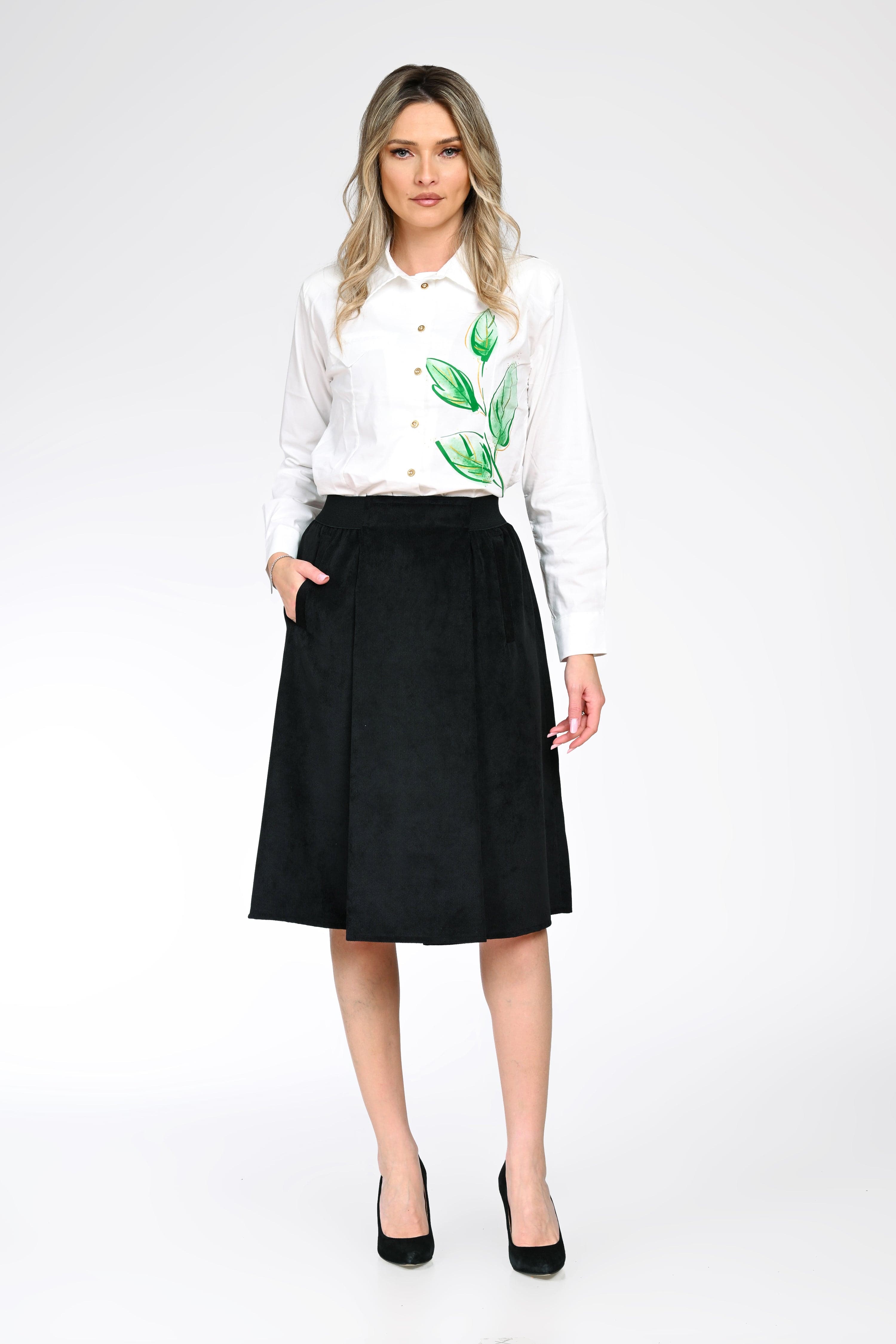 Maria este o fustă midi clasică, realizată din raiat moale, ideală pentru sezonul rece și tranziție. Croiala lejeră oferă libertate de mișcare, iar talie elastică asigură confort și o potrivire plăcută pe corp.
