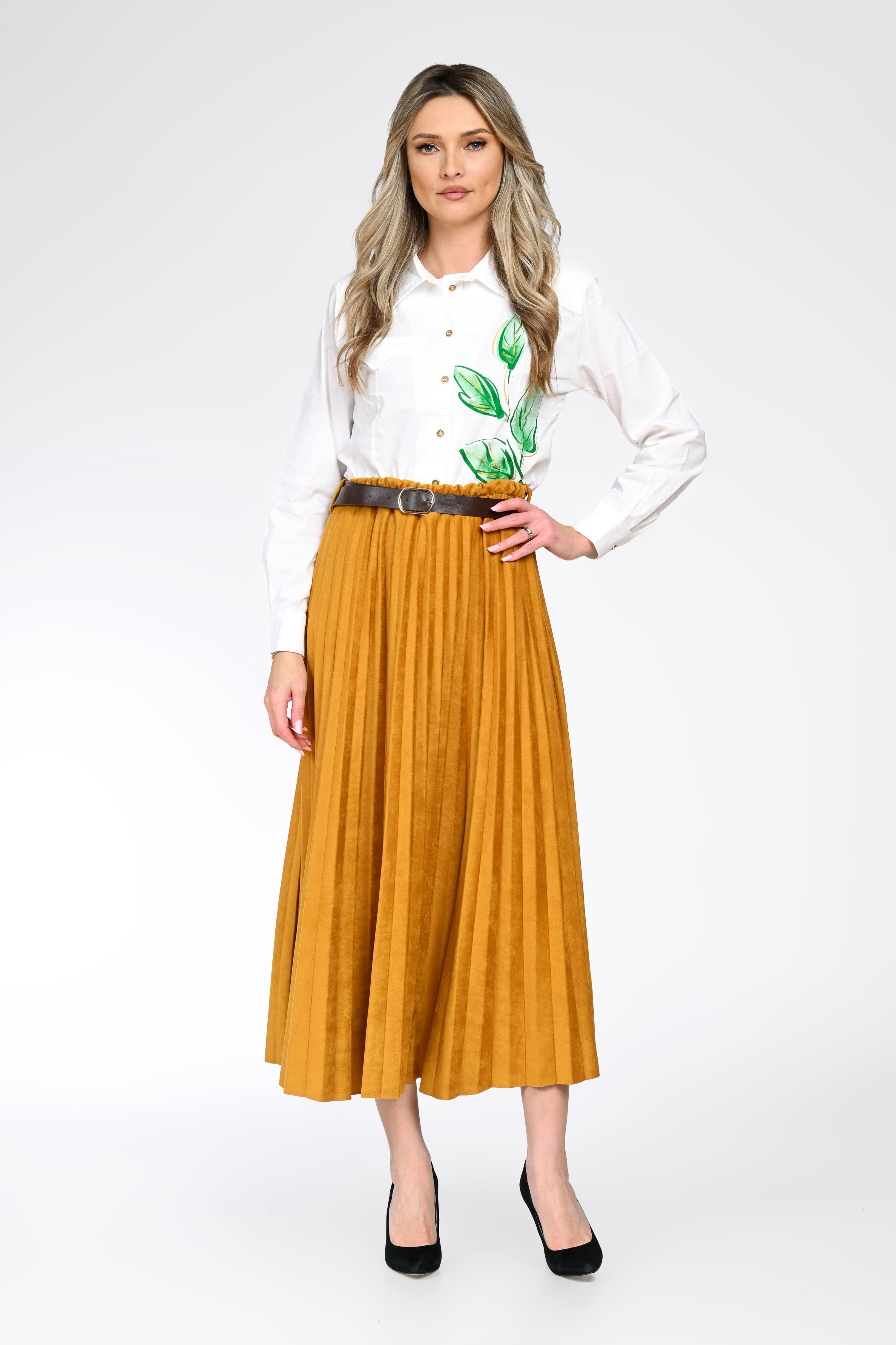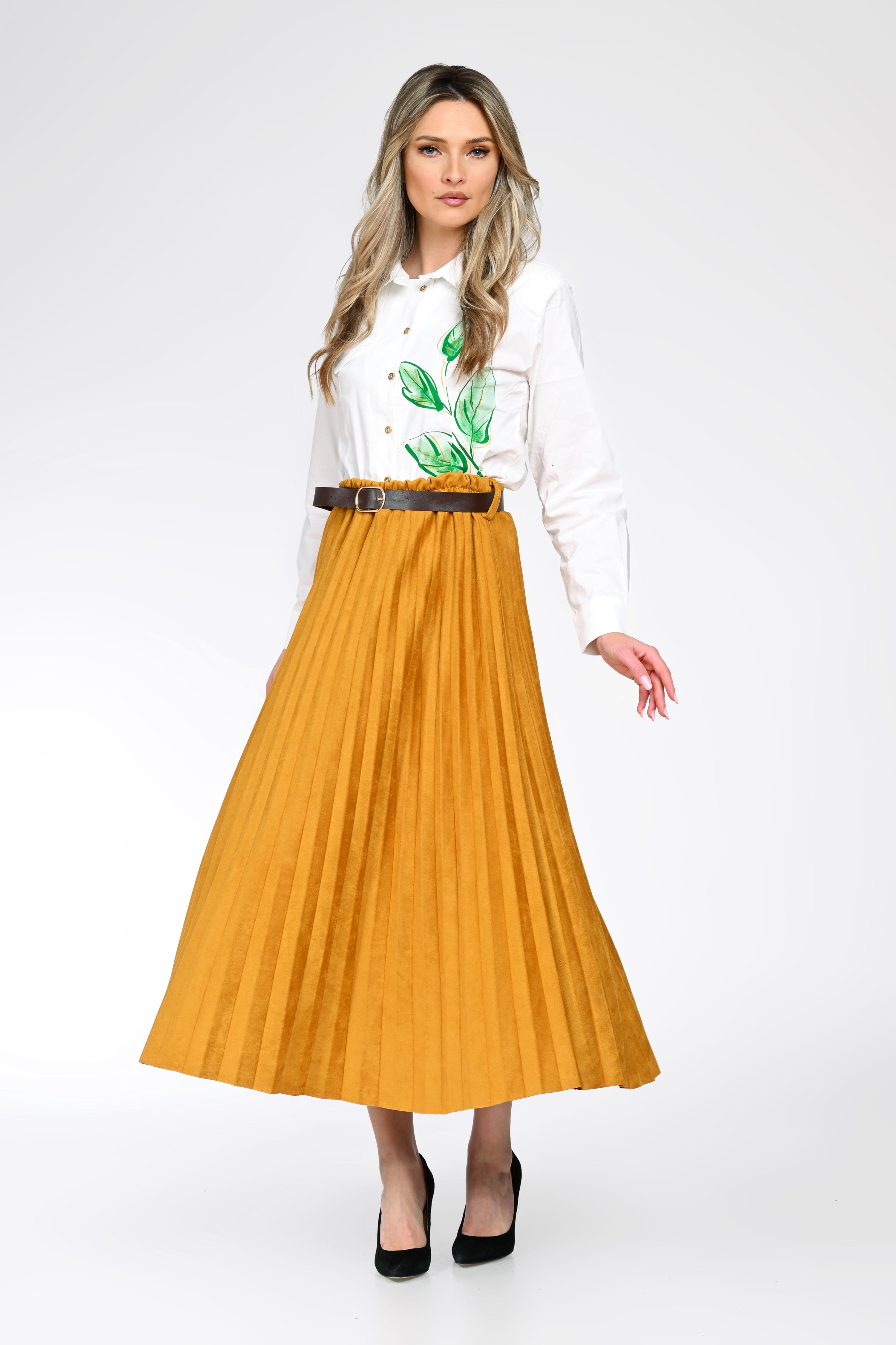 Fustă midi plisată cu curea – Evelina