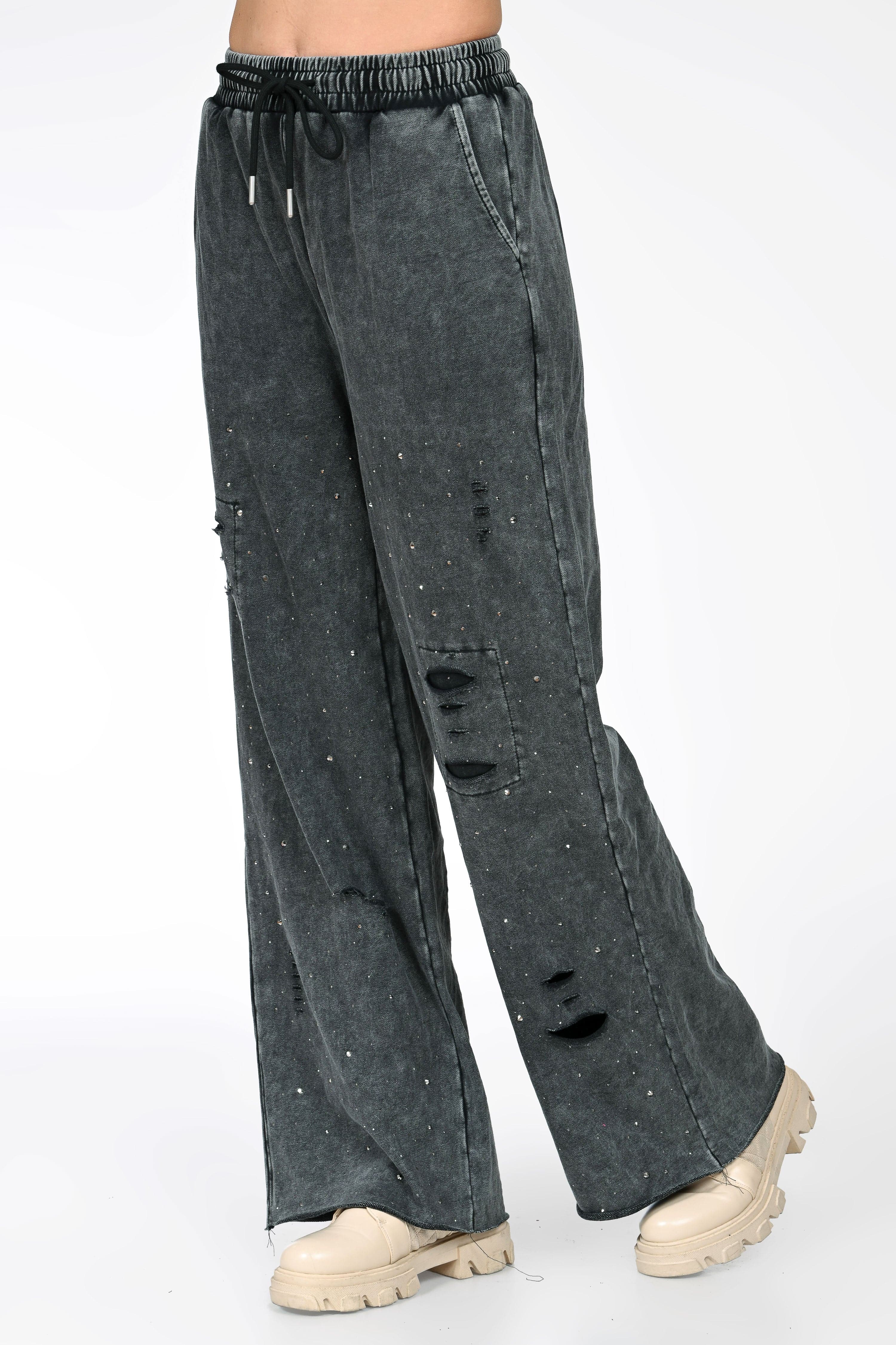 Designul cu talie elastică și șnur reglabil asigură o potrivire comodă, adaptabilă diferitelor siluete. Efectul prespălat și detaliile decorative discrete, inspirate din stilul streetwear, adaugă personalitate și un aer modern piesei. Croiala lejeră îi face ușor de purtat atât în ținute relaxate de zi, cât și în combinații casual statement.