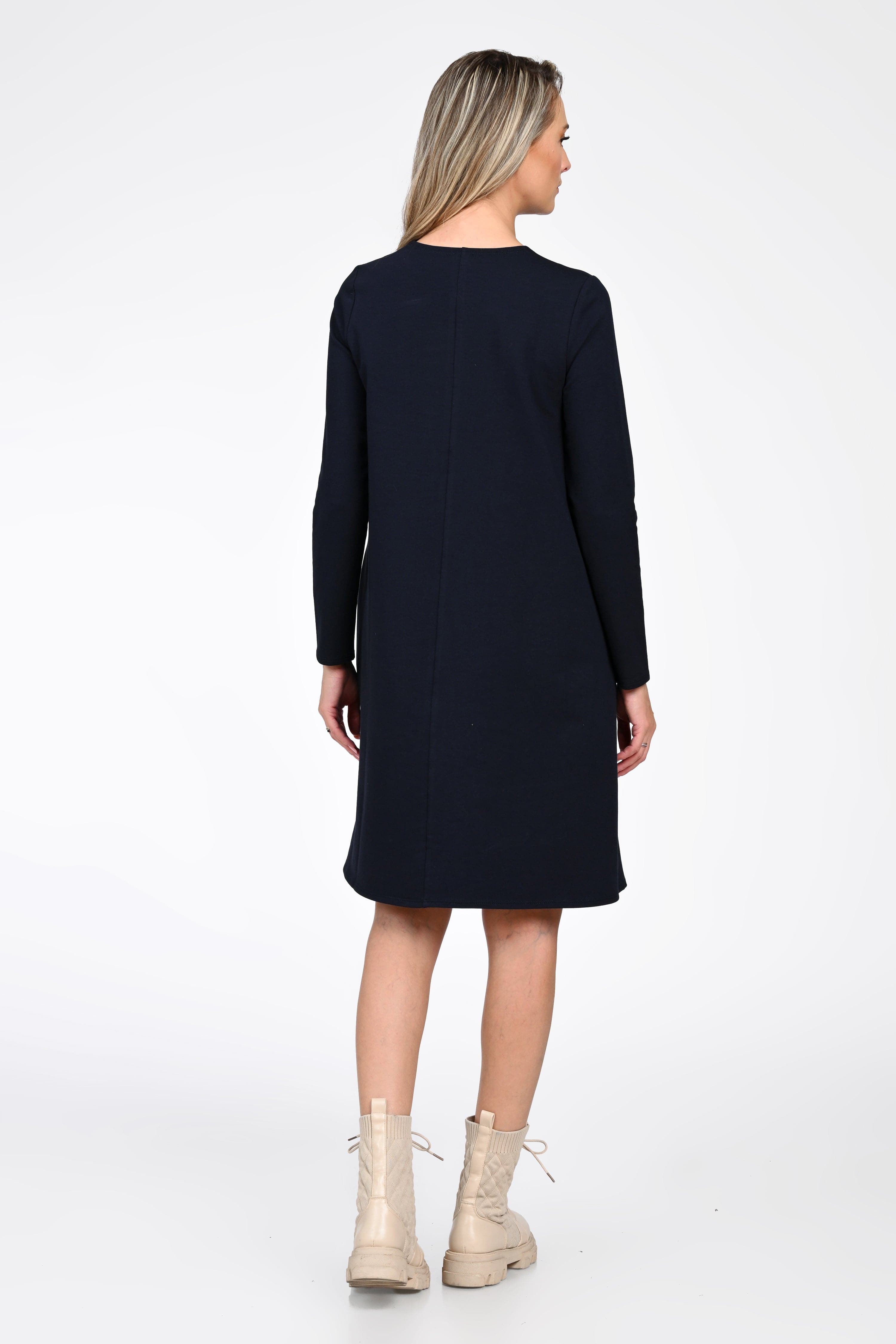 Rochia Iris este alegerea ideală pentru zilele în care îți dorești o ținută comodă, modernă și feminină. Realizată dintr-un material moale și elastic, această rochie bleumarin cu mânecă lungă oferă lejeritate în mișcare și o purtare extrem de plăcută, indiferent de momentul zilei.