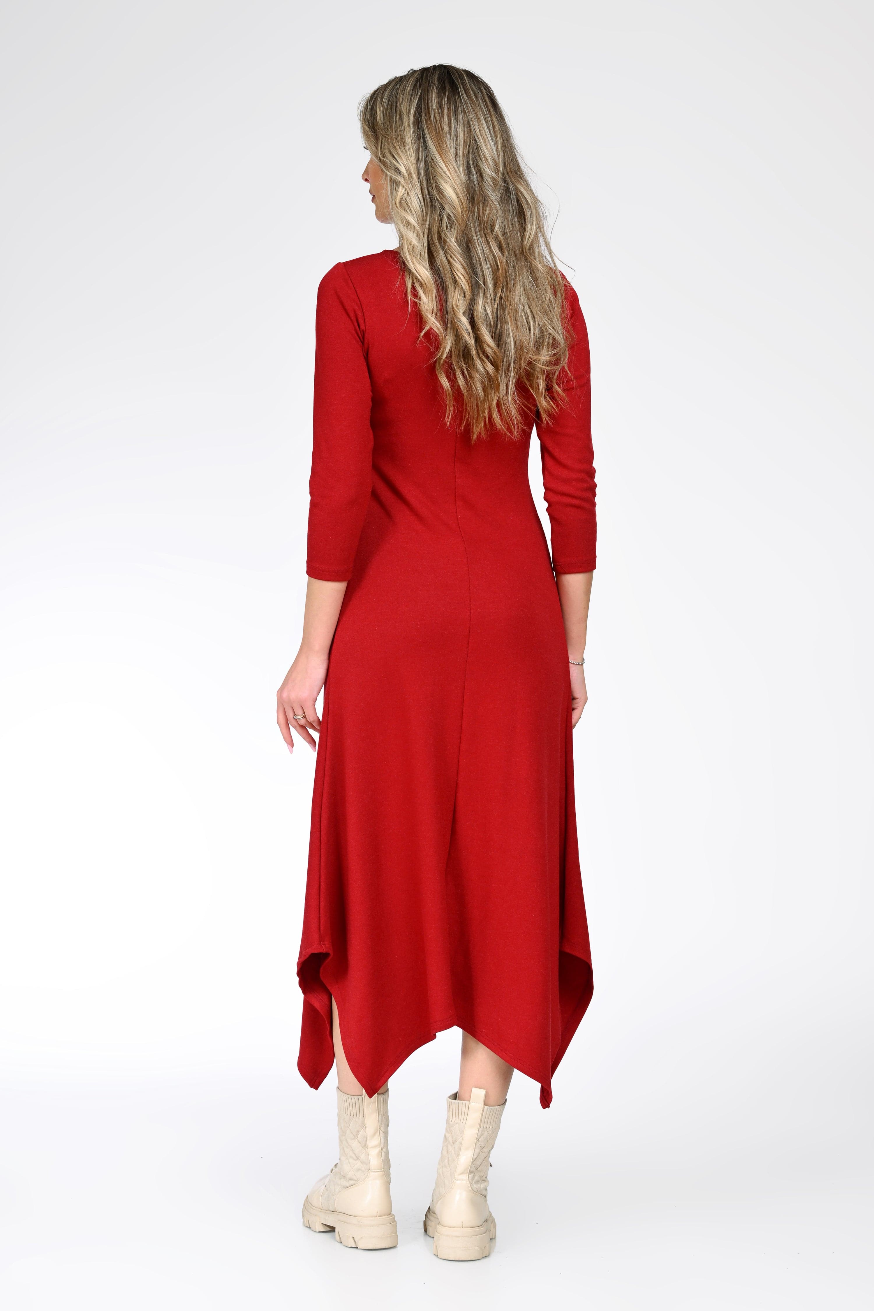 Rochie midi damă asimetrică roșie – Amelia